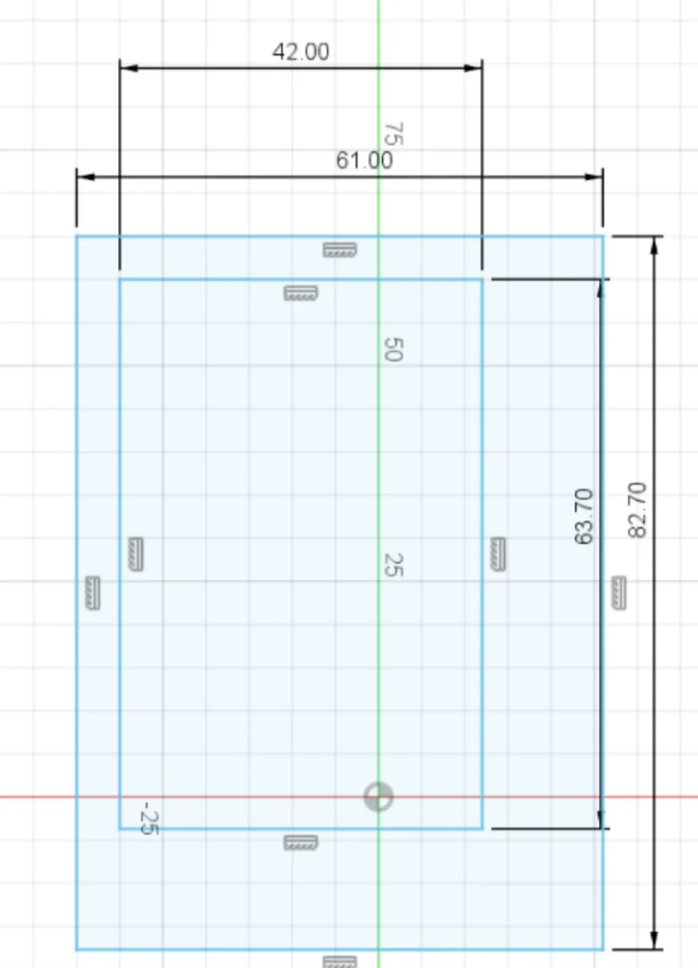 Create another rectangle with 20mm extra on each dimension! (I will have 61mm x 82.7mm):