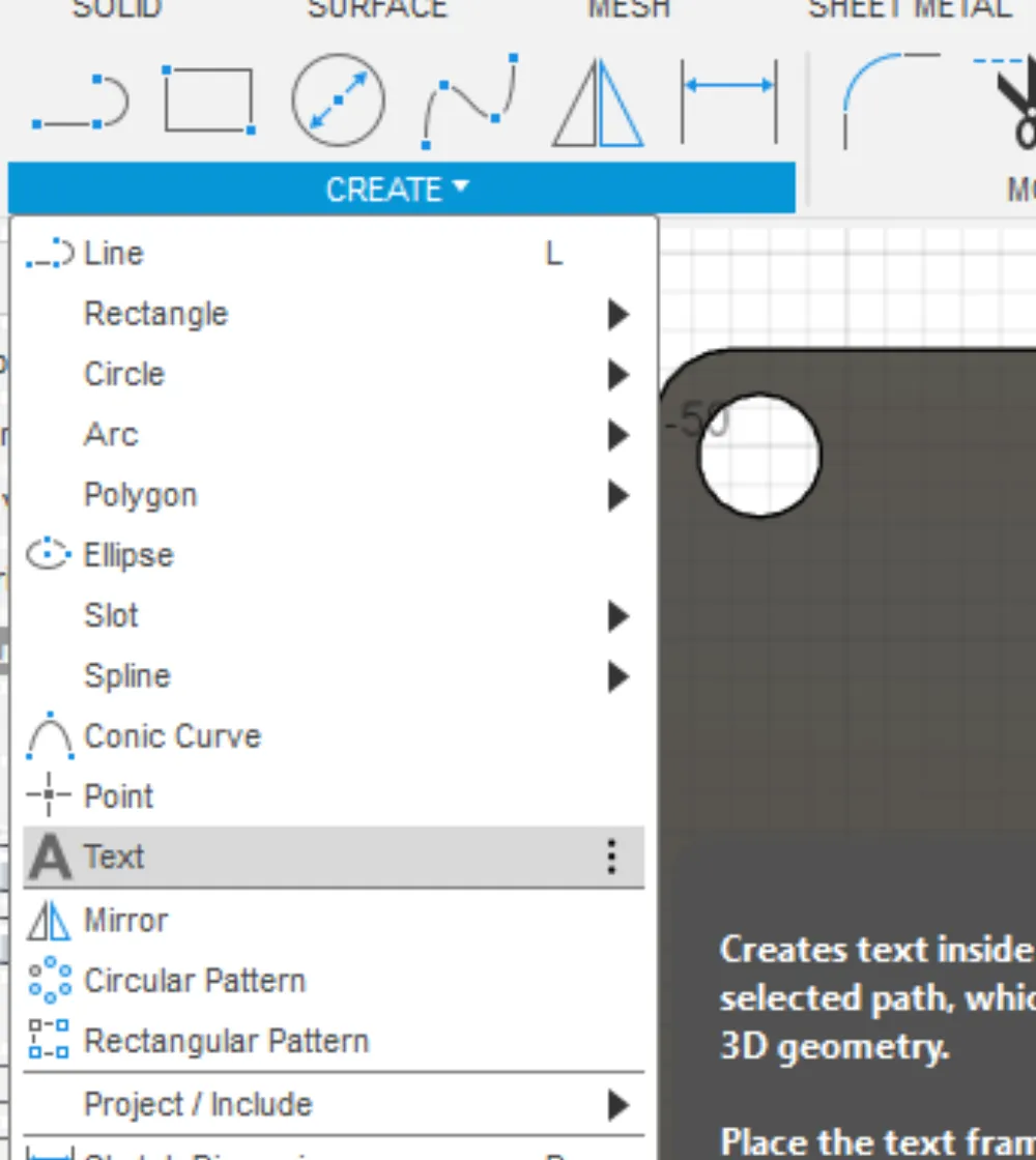 Next, we will brand our case! This part will not be seen and is for us to be able to keep track of who's submission is whos. Go to the bottom of the case, or somewhere that won't be seen, and create a new sketch. Make a text box, and enter the name of your hackpad on it.