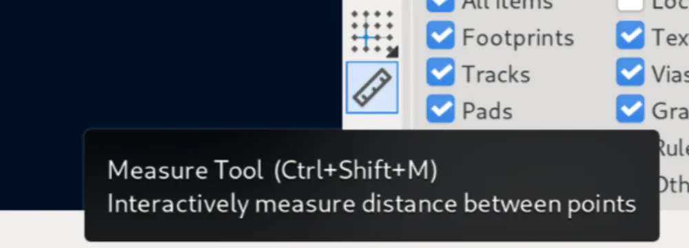 Now go back to KiCAD PCB editor and click on your Edge.Cuts outline. In the bottom left of your screen, you can find the length and widgth of your PCB. Alternatively, measure the dimensions of your board with the ruler tool. Click on one end of your Edge.Cuts and click again on the other end.
