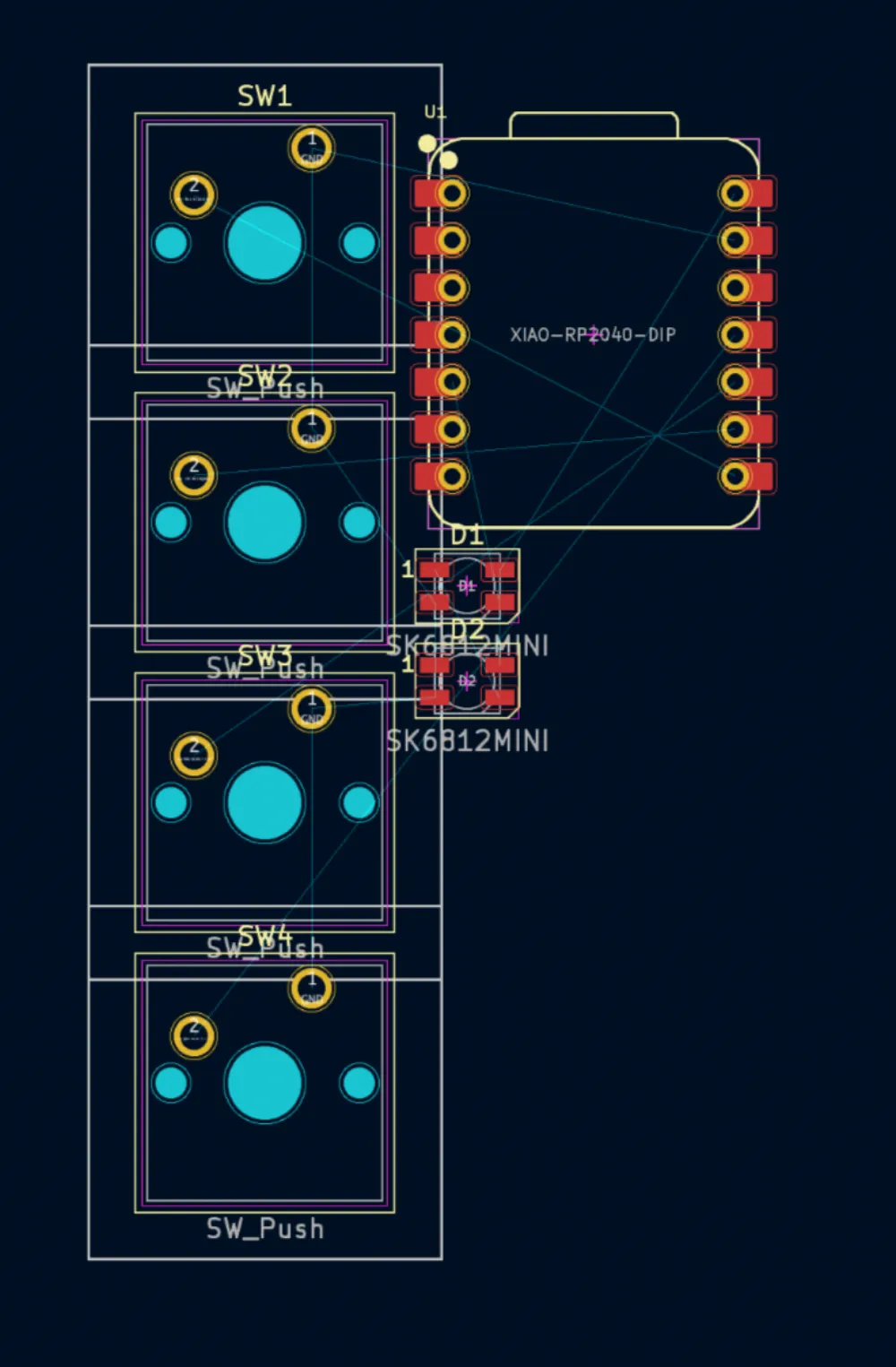Be sure to change the SK6812's footprints to one including "SK6812MINI" in their name! Once you're done, you can hit apply & save schematic. We're now officially done with the schematic! Onto making the pcb itself: