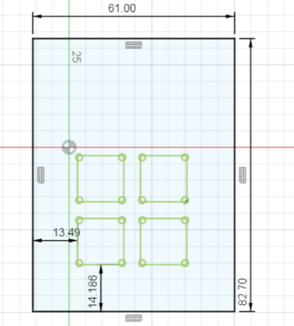 Now lets create a new rectangle, define it's width and height be the same as the size of the top plate. Set the distance between the left keyhole end and the left rectangle edge the x distance you just measured + 9.5 (for me it's 3.99+9.5). Same for the bottom edge of the keyhole and bottom edge of the rectangle, y distance + 9.5.