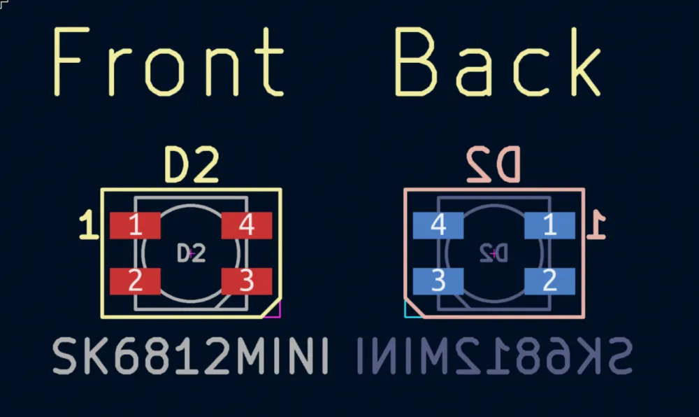 If you want to put the footprint on the back side, press F. Here is what the footprints look like on different sides: