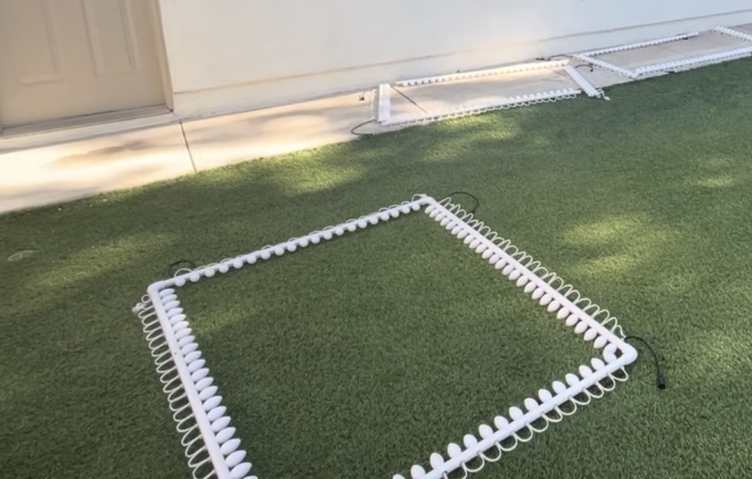 This was the easy part, and by the easy part, I mean the part that we had done before. I had to get out all of my props, PVC window frames, garage, outlines, and mounting hardware from the attic. Then I had to sort through the mess I had created and figure out where everything went because I did a terrible job labeling everything last year. Then, I once again enlisted my dad‘s help putting everything up with the systems that I had in place from last year. This took the whole day, and half of the next one. I also had to repair all of the broken 3-D printed C9 covers from last year. On top of that, this involved getting the ladder out and mounting up all of the verticals that I had created during the summer with zip ties and securing them with stakes or weights on the ground.