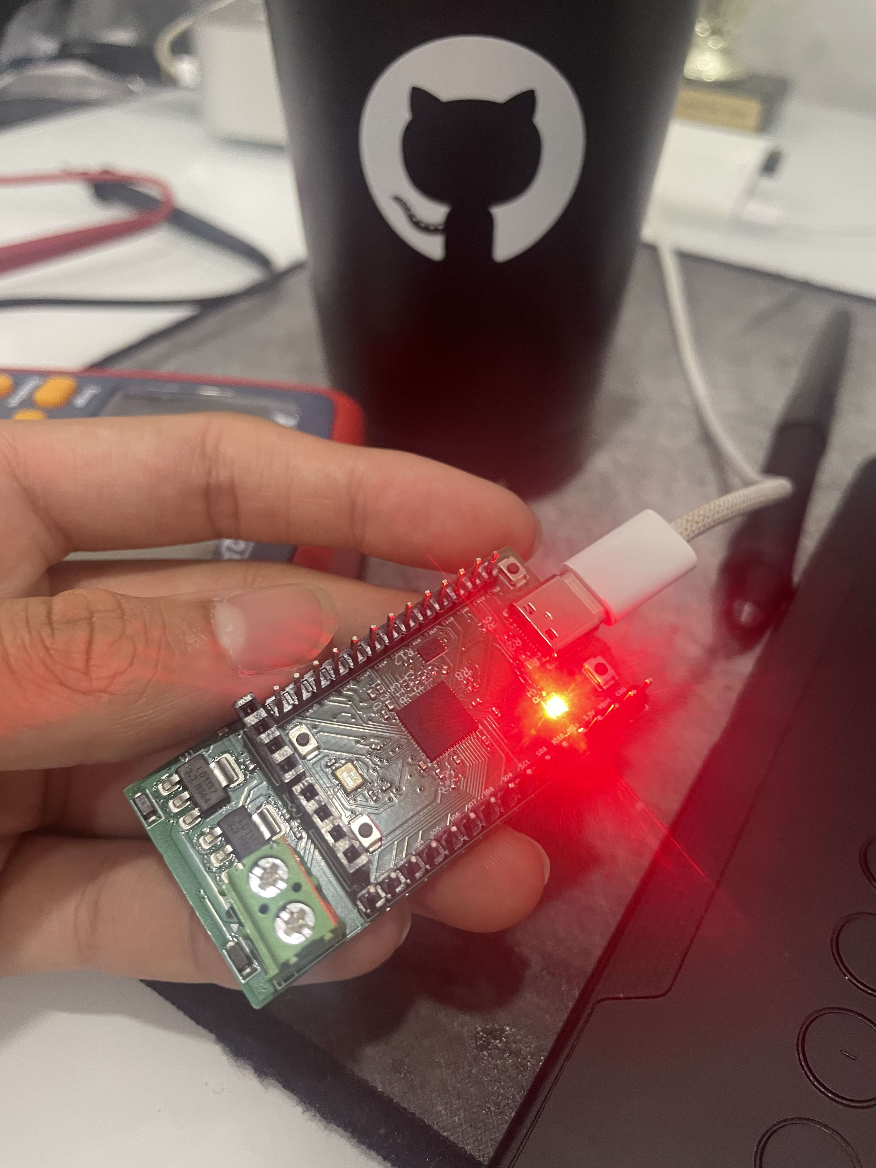 I spent a lot of time debugging the board, and had to use another type of flashing software to flash the initial firmware to the chip, luckily my brother had that from another board he made though so I didn't have to order. There is not too much code in the repository because I could take some sample code from the documentation and that worked for a lot of the setup, but I do have some things for the clock and other stuff in there. I also had to use my multimeter for quite a few points to test if it was working properly.