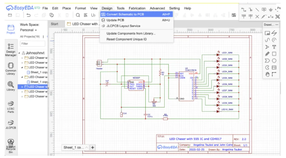 Now, its time to convert your schematic (circuit connection guide) into a PCB (the physical layout of the connections).