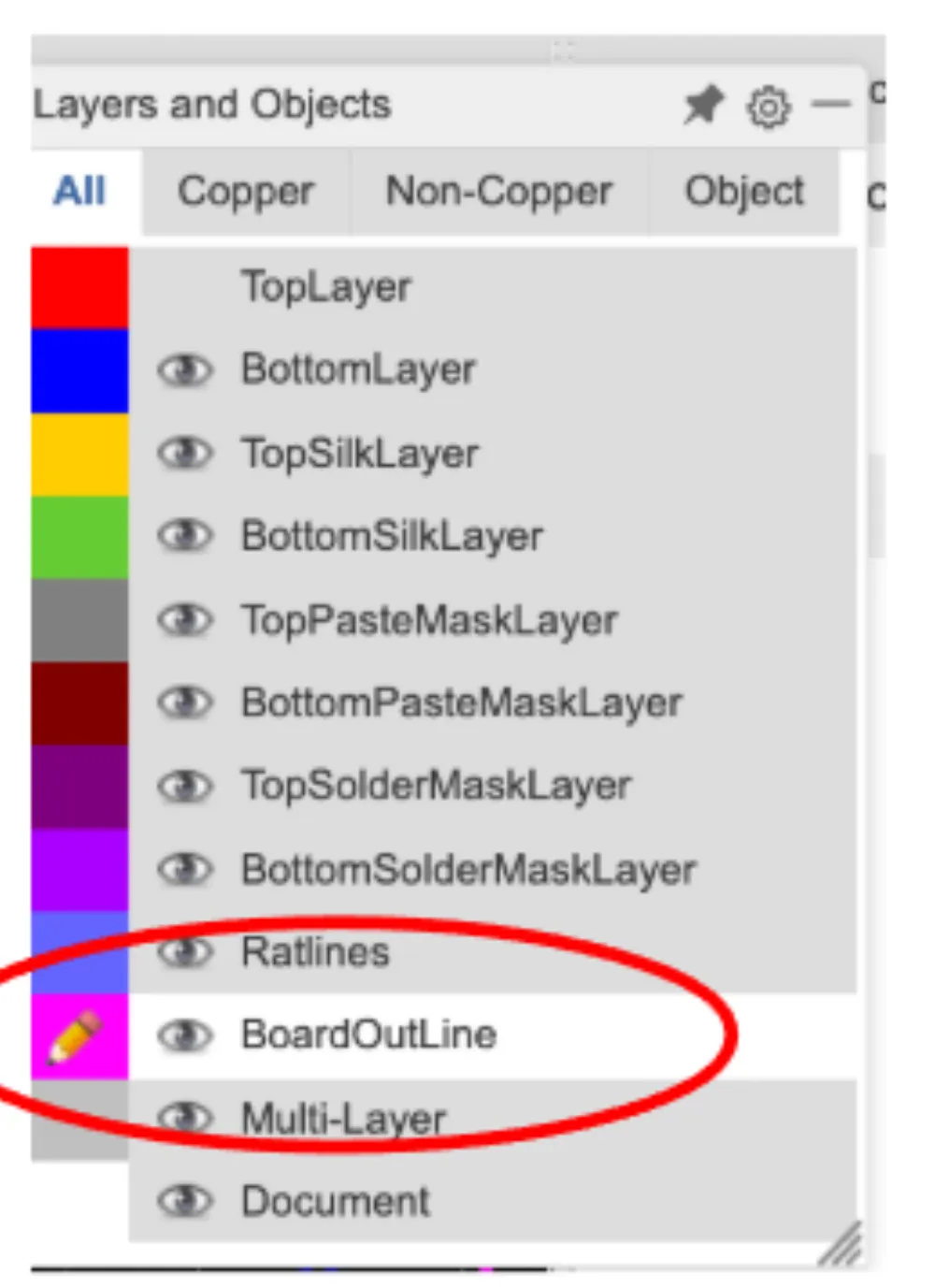 Next, you can either make your own board outline using the “Line” and other features in the toolbar.