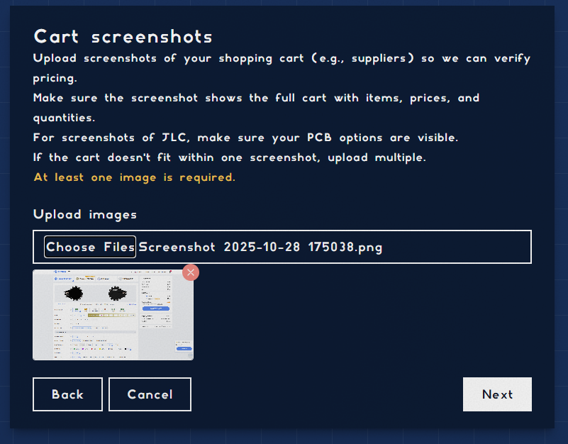 - Your Gerber (in your PCB editor do File → Generate PCB Fabrication File (Gerber))