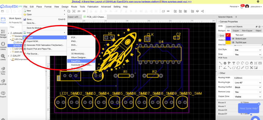 - Your PCB (in your PCB editor do File → Export → EasyEDA)