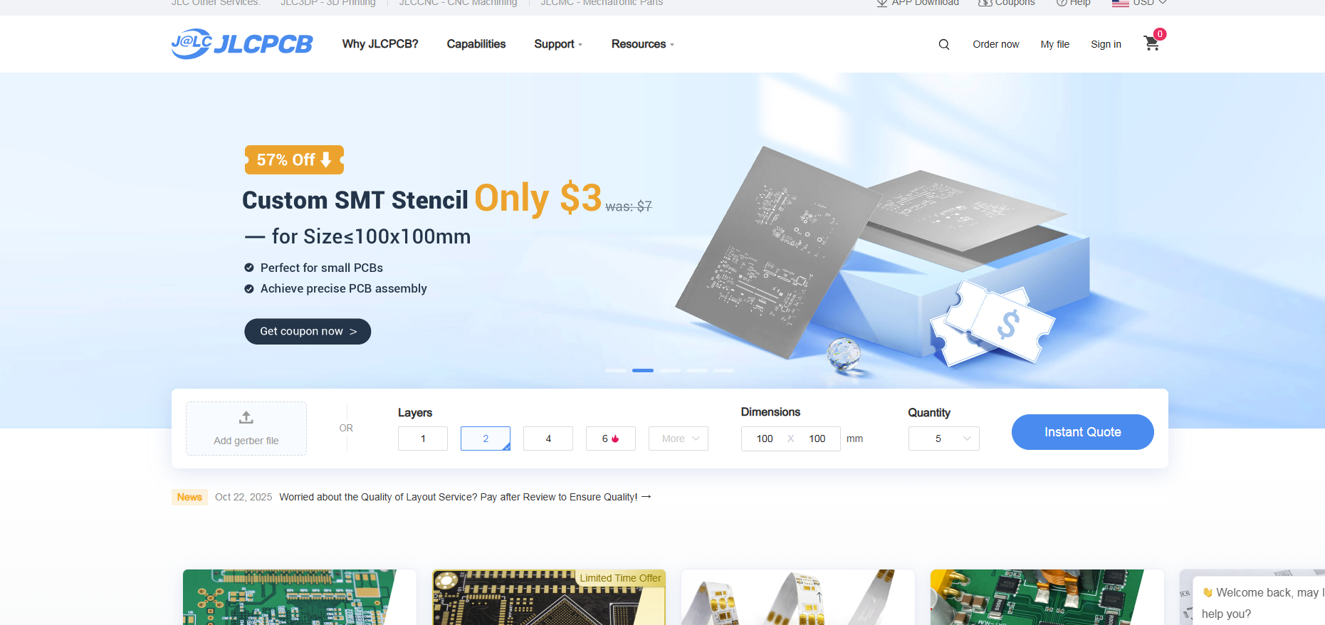 Go to https://jlcpcb.com/ and make an account. Then, add your Gerber file for the instant quote.